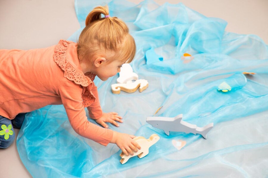 Grote houten zeedieren nodigen uit tot rollenspel en gesprek. De eenvoudige vorm helpt fantasie en taalontwikkeling. Dikke, stabiele figuren zijn fijn voor peuterhanden. Gebruik ze los of in een thematafel. Ook mooi als decoratie op wandlijsten.