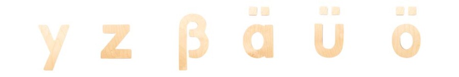 - 36-delig: 26 kleine letters, 6 punten, extra Ä, Ö, &00DC; en ß