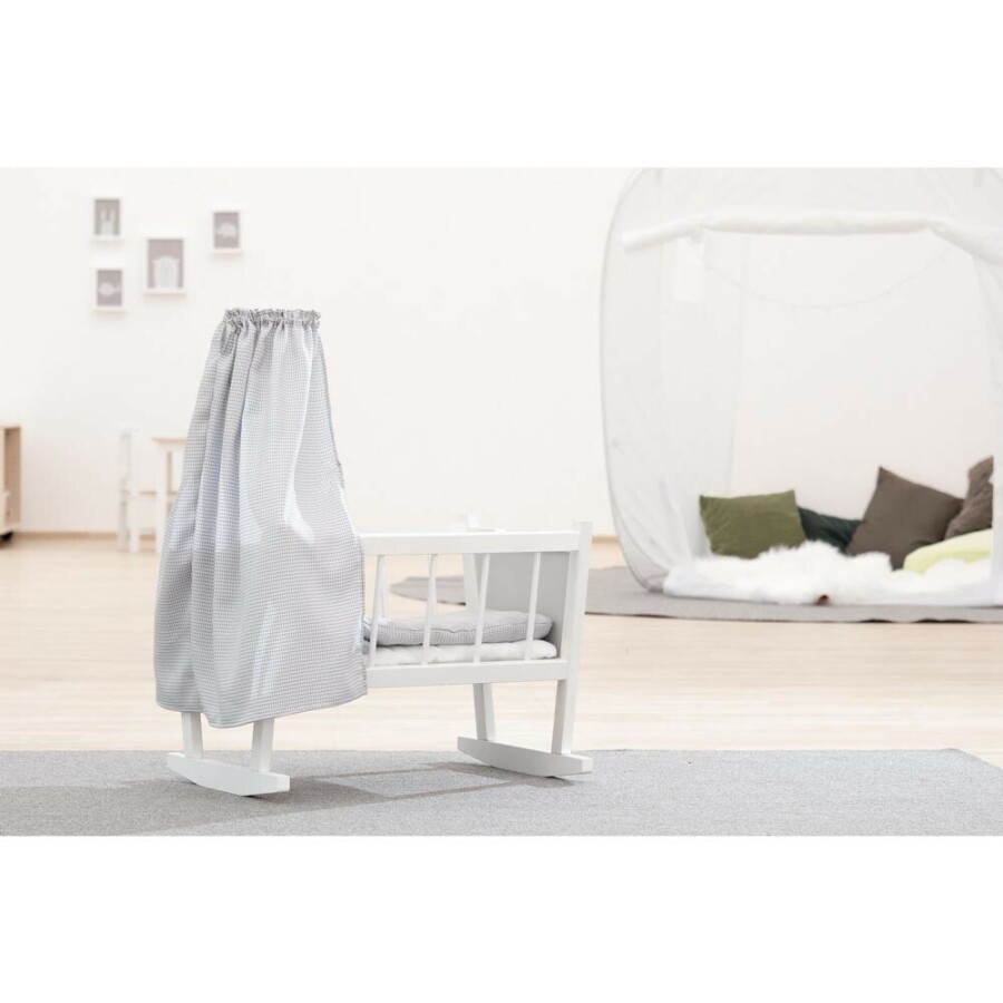 Deze stevige houten poppenwieg is perfect voor jonge poppenouders in de klas. Gemaakt van massief beukenhout, is deze wieg duurzaam en ideaal voor dagelijks gebruik door kinderen. Met het meegeleverde beddengoed, bestaande uit een matras, kussen, dekentje en een prachtige hemel, kunnen poppen tot 48 cm comfortabel slapen. Het beddengoed is wasbaar op 30°C, wat het onderhoud eenvoudig maakt. De wieg is eenvoudig in elkaar te zetten met de geïllustreerde handleiding.
