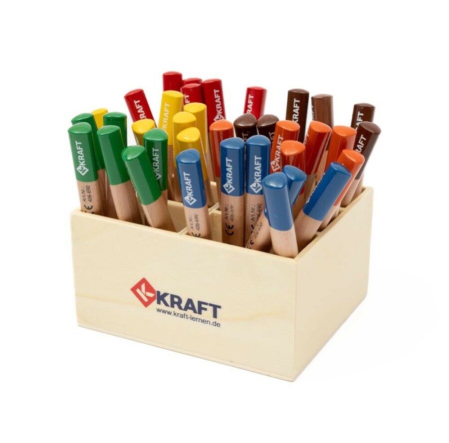 Dit houten bakje houdt dikke potloden netjes bij elkaar, klaar voor kleine en grote tekenaars. Het compacte formaat past op elke tafel of vensterbank. Gemaakt van stevig hout in een natuurlijke look. Handig voor groepstafels en thuis. Combineerbaar met jumbo potloden.