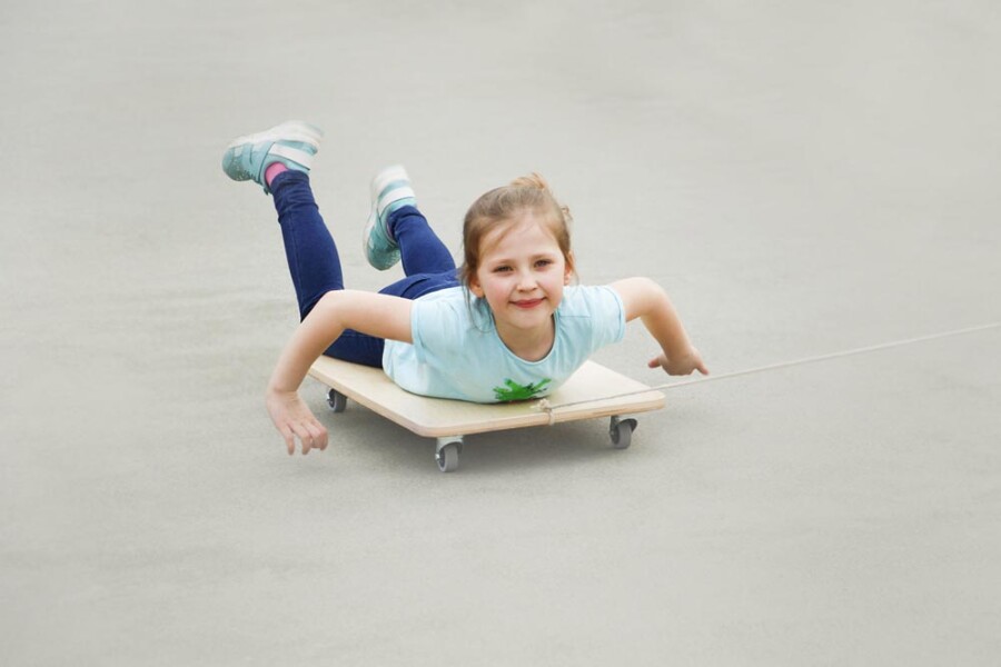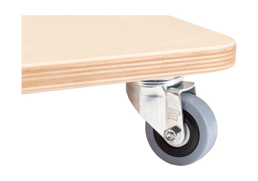 Stevige houten rolplank met soepel draaiende wielen voor bewegingsspel in klas en thuis. De vier zwenkwielen met kogellagers rollen licht en geven goede controle. Twee bevestigingsgaten maken touwtrekken, slepen of teamopdrachten eenvoudig en veilig. Het lage oppervlak helpt bij evenwicht, core-stabiliteit en motoriek.