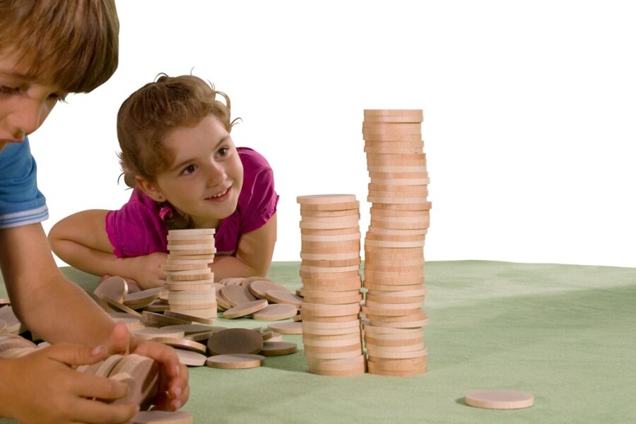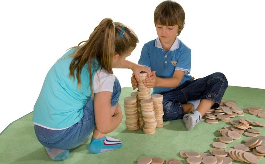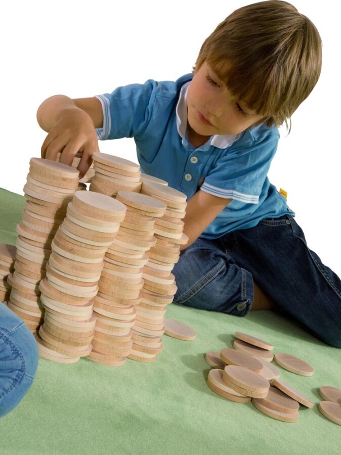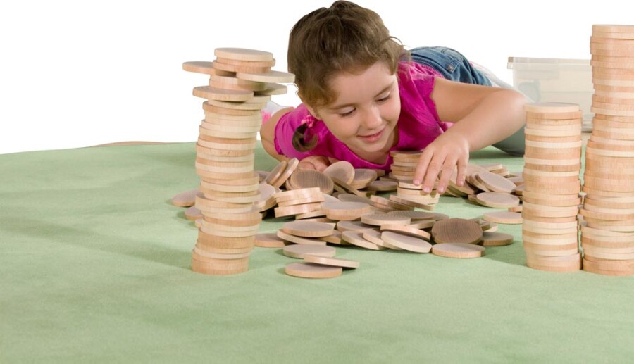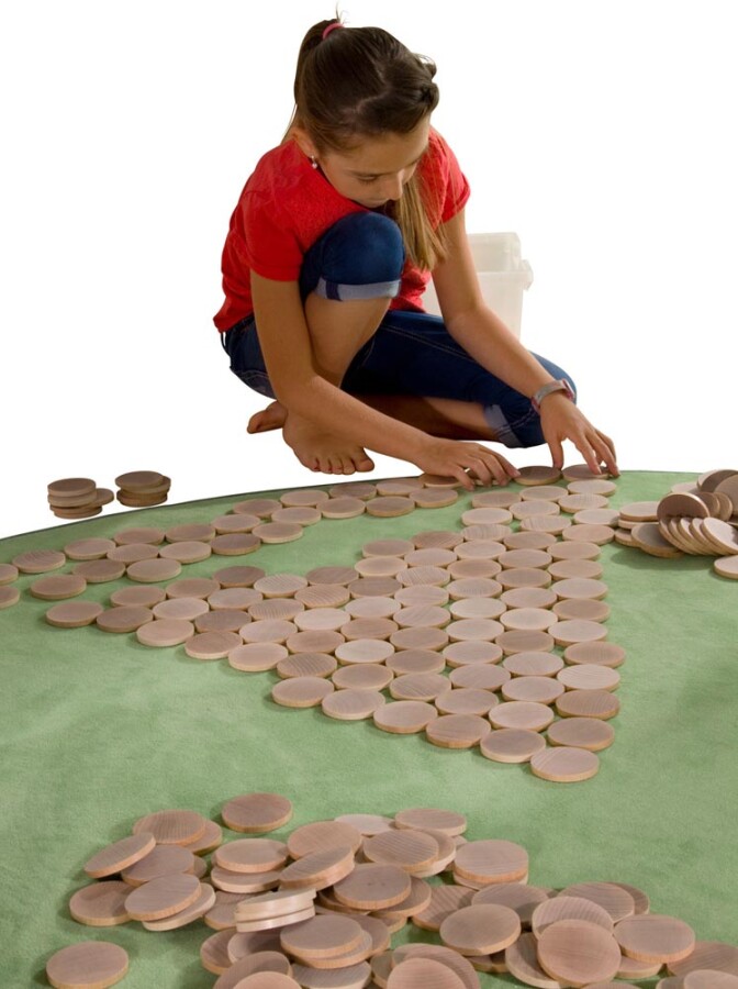 Met honderden houten schijfjes ontstaat snel een rijke speel- en leeromgeving. Kinderen maken patronen, sorteren, tellen en bouwen vlakke figuren. De vorm voelt prettig aan en is veelzijdig inzetbaar. Ideaal voor reeksen, mandala’s en creatieve opdrachten.