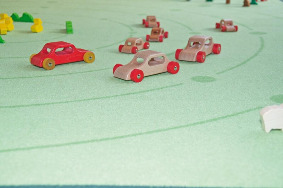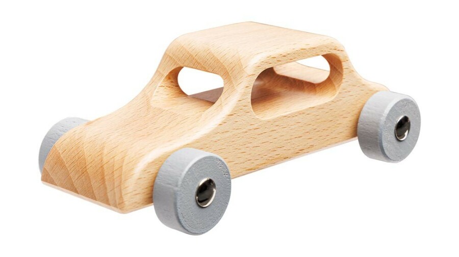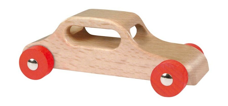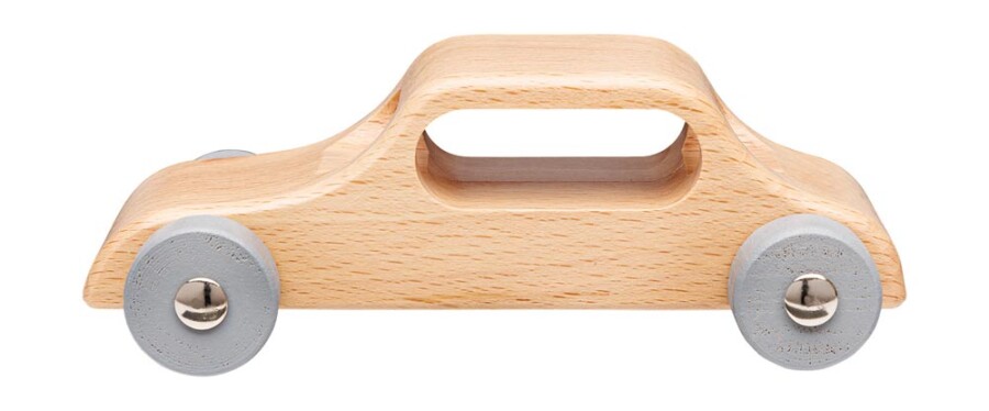 Robuuste houten auto voor kleine bestuurders in klas en thuis. Uit één stuk hout gemaakt, dus sterk en vormvast. Doorlopende stalen assen laten de wielen soepel rollen. De naturel lak is glad en veilig voor kinderhanden. Past goed in kleine handen en nodigt uit tot rollenspel.