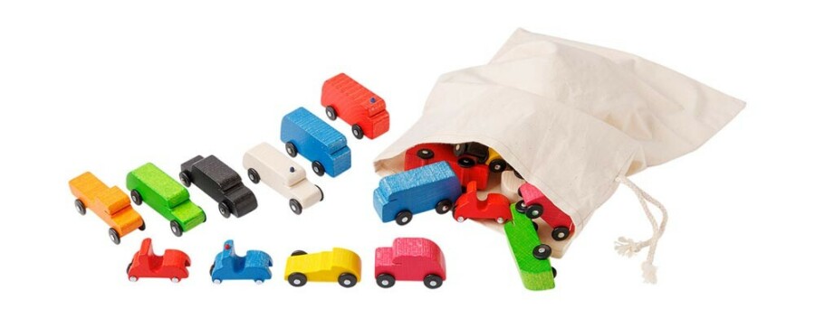 Specificaties van Houten speelgoedauto's in katoenen zakje | 20 stuks