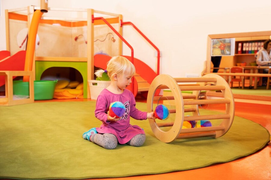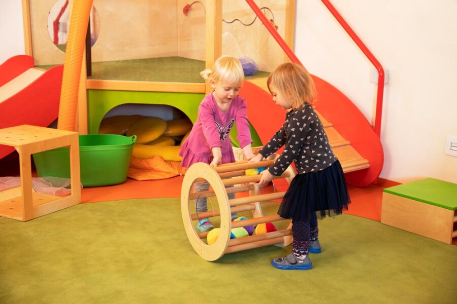 Deze houten speelrol nodigt uit tot bewegen en ontdekken. Rol hem door de ruimte en volg de dans van de inhoud. Leg je hem neer, dan wordt het een uitdagend steekspel. De opening laat ballen verdwijnen en weer terugkomen. Zo groeien coördinatie, kracht en doorzettingsvermogen spelenderwijs.