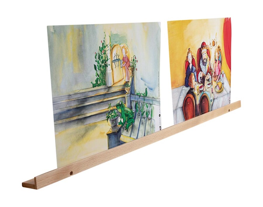 Laat boekjes, tastplaten en kleine figuren veilig en zichtbaar staan aan deze smalle houten wandlijst. Monteer op kinderhoogte en nodig uit tot zelfstandig kiezen en opruimen. Ideaal voor klas, gang of speelhoek. Wordt geleverd met montagemateriaal voor snelle bevestiging.