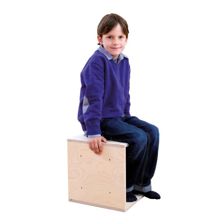 Deze rode kubus met plexiglas zorgt voor duidelijke kleuraccenten in het lokaal. Door het venster ontstaan verrassende spiegelbeelden. Combineer meerdere kubussen voor overzicht en speelse indeling. Ook inzetbaar als krukje of tafeltje. Gemaakt van dik berkenmultiplex.