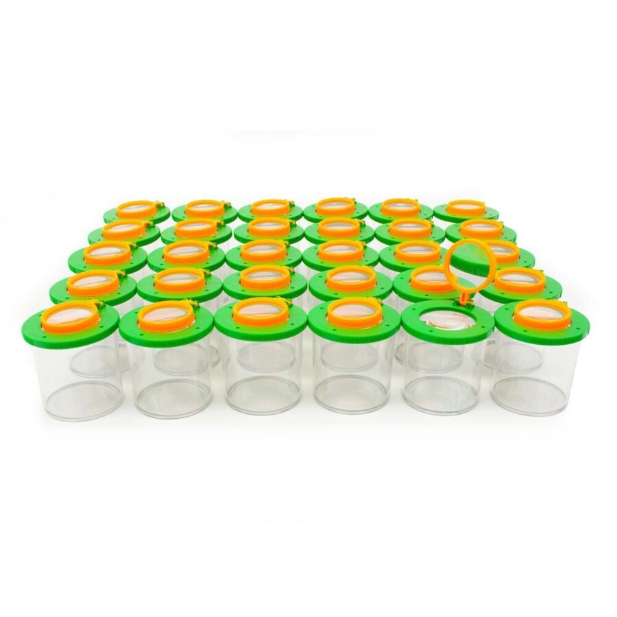 Voor de hele klas of BSO: veel loeppotjes zodat iedereen aan de slag kan. Dubbele lens geeft 2x en 4x vergroting per potje. Kunststof potje met schroefdeksel is robuust en kindvriendelijk. Licht en compact, dus ideaal voor buitenopdrachten. Bodemraster ondersteunt simpele metingen en vergelijkingen.