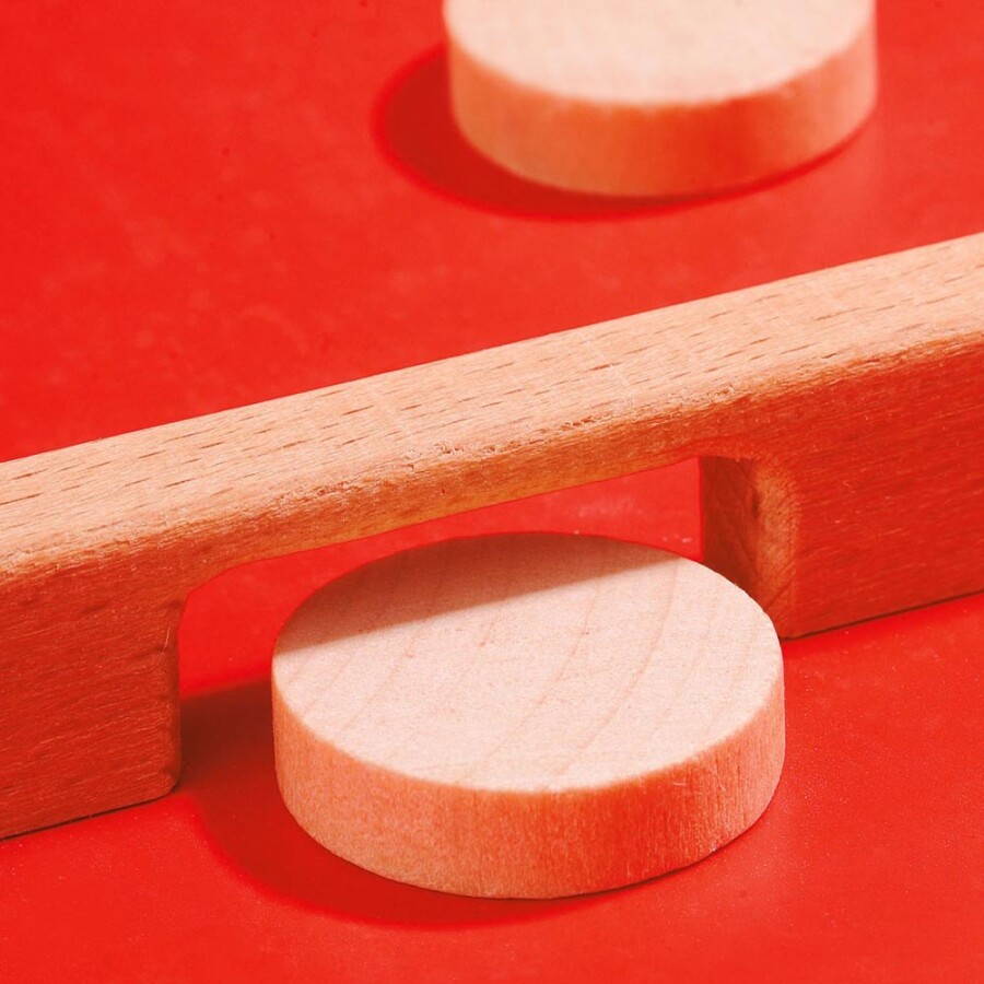 Dit razendsnelle tafelspel schiet houten schijfjes door de opening met een elastische snaar. Wie als eerste zijn veld leeg heeft, wint. Het spel zet ogen en vingers aan het werk, met focus als bonus. Stevig hout maakt het ideaal voor korte pauzes op school. Klein van formaat, dus overal snel inzetbaar.