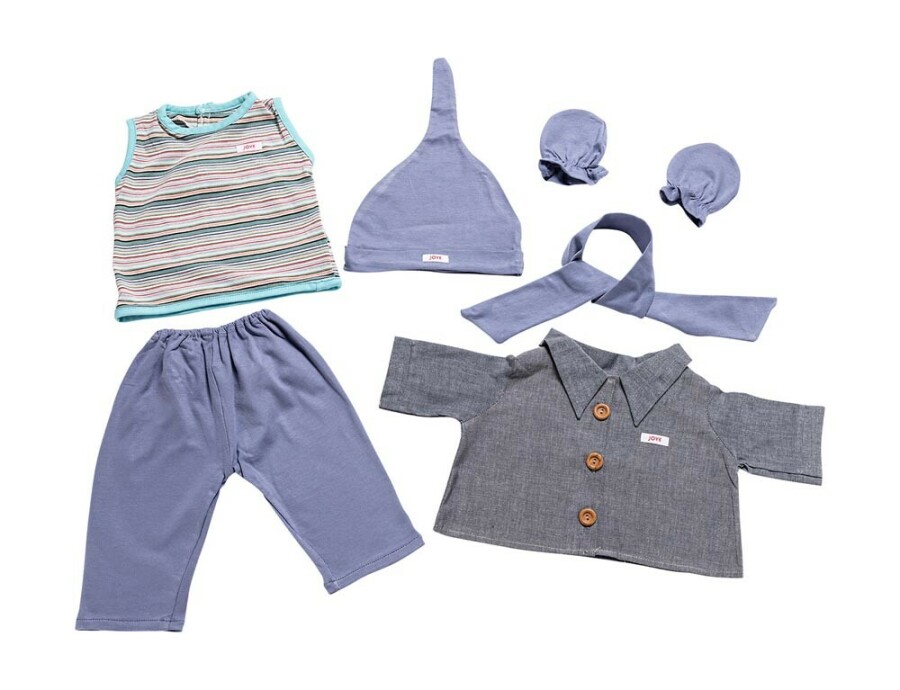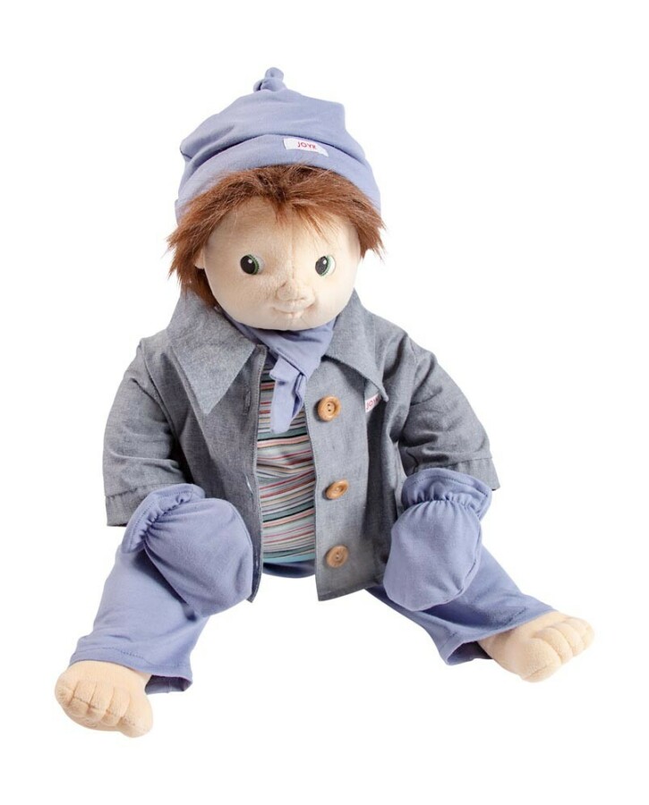 Stoere set in denimstijl met warme accessoires voor JOYK poppen. De sjaal, handschoenen en bijpassende muts geven extra speelplezier. Kinderen kunnen zelfstandig oefenen met ritsen, knopen en laagjes. Ideaal voor themaspel en emoties verwoorden.