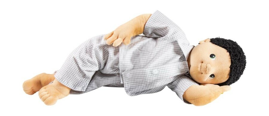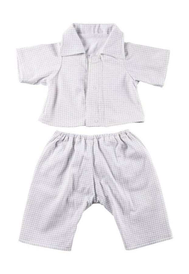 Comfortabele pyjamaset voor JOYK poppen, ideaal om aan- en uitkleden te oefenen. De broek heeft een zachte elastische taille. Het bijpassende hemd is gemaakt van grijsâ€wit geruite stof. Fijn voor rollenspel, troostmomenten en verzorgende activiteiten.