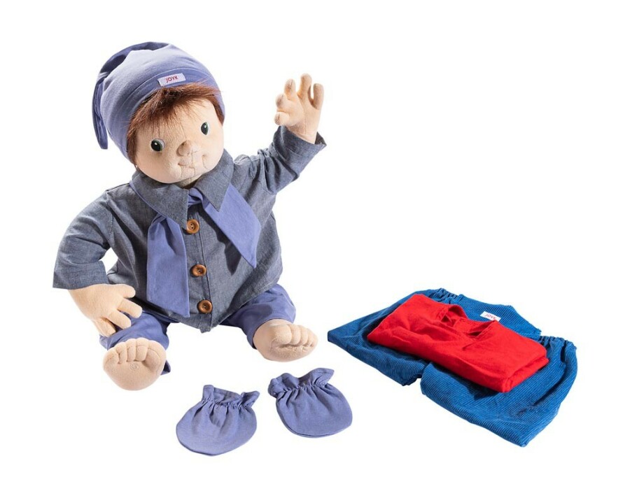 Johan nodigt uit tot troosten, verzorgen en gesprek in rollenspel. Het aan- en uitkleden lukt al bij jonge kinderen. De kleding is van katoen en wasbaar op 30 graden. Past bij poppen van vijftig tot vijfenzestig centimeter. Wordt geleverd met zijn vertrouwde outfit.