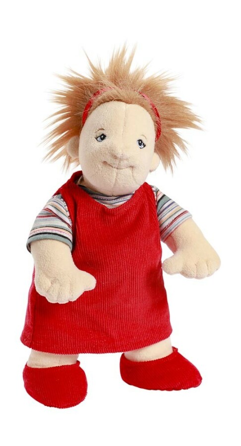 Deze Joyk-pop in moederrol brengt gezinsrollen tot leven in rollenspel en kringgesprek. Buigbare gewrichten zorgen voor natuurlijke houdingen en expressie. Kleding en schoenen gaan makkelijk aan en uit en zijn wasbaar. Het zachte, huidvriendelijke lichaam voelt uitnodigend en stevig aan. Met 26 cm is dit formaat ideaal voor kleine handen en verhalen.
