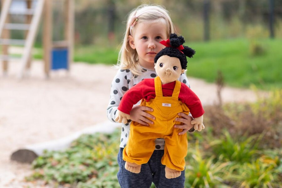 Deze empathiepop van JOYK voelt levensecht en warm, waardoor kinderen direct willen troosten, dragen en praten. Sofia kan zelfstandig zitten en blijft netjes zitten tijdens kringactiviteiten. Granulaat in het lichaam geeft een natuurlijk gewicht en rust. Met anatomische details voor eerlijke, eenvoudige gesprekken over het lijf. Ondersteunt empathie, woordenschat en verzorgend spel in klas en thuis.