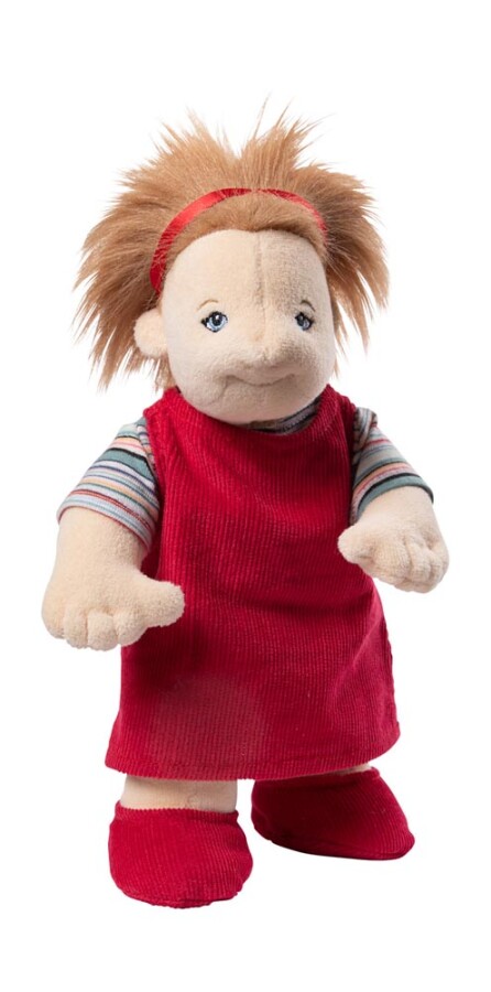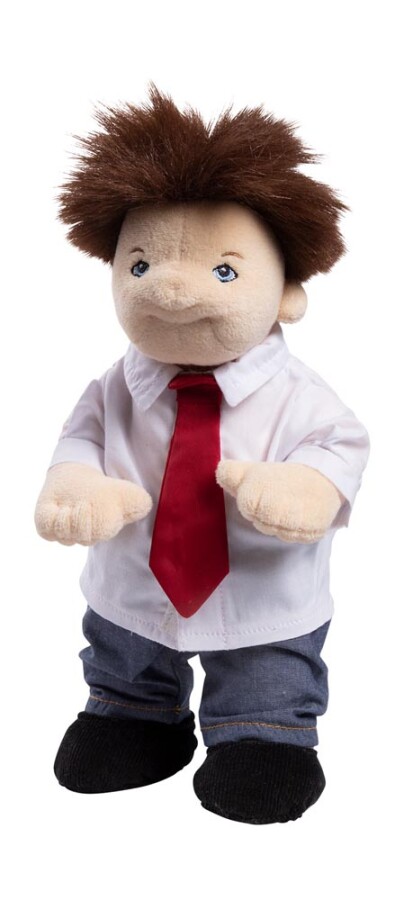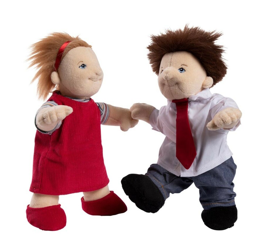 Een ouderpaar om gezinsrollen levensecht te spelen, in de klas en thuis. Inwendig draad zorgt dat ze goed kunnen staan en zitten. Kleding en schoenen gaan gemakkelijk aan en uit, ideaal voor fijne motoriek. Het zachte lichaam ligt prettig in de hand en past in grotere poppenhuizen. Lichaam van huidvriendelijke stretchstof; kleding van katoen en handwasbaar.
