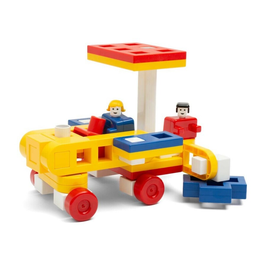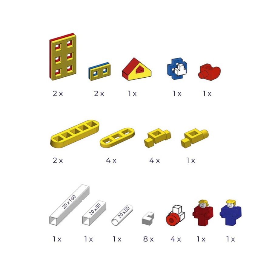Een veelzijdige set waarmee peuters en kleuters eindeloos combineren en uitbreiden. Alle onderdelen passen op elkaar, ook uit andere series, dus je bouwt steeds verder. Dankzij scharnieren en draaipunten ontstaan bouwwerken met echte functies, zonder ingewikkelde voorbeelden. Zo groeien fantasie en fijne motoriek spelenderwijs. Het meegeleverde boekje helpt starten en differentiëren in de groep.