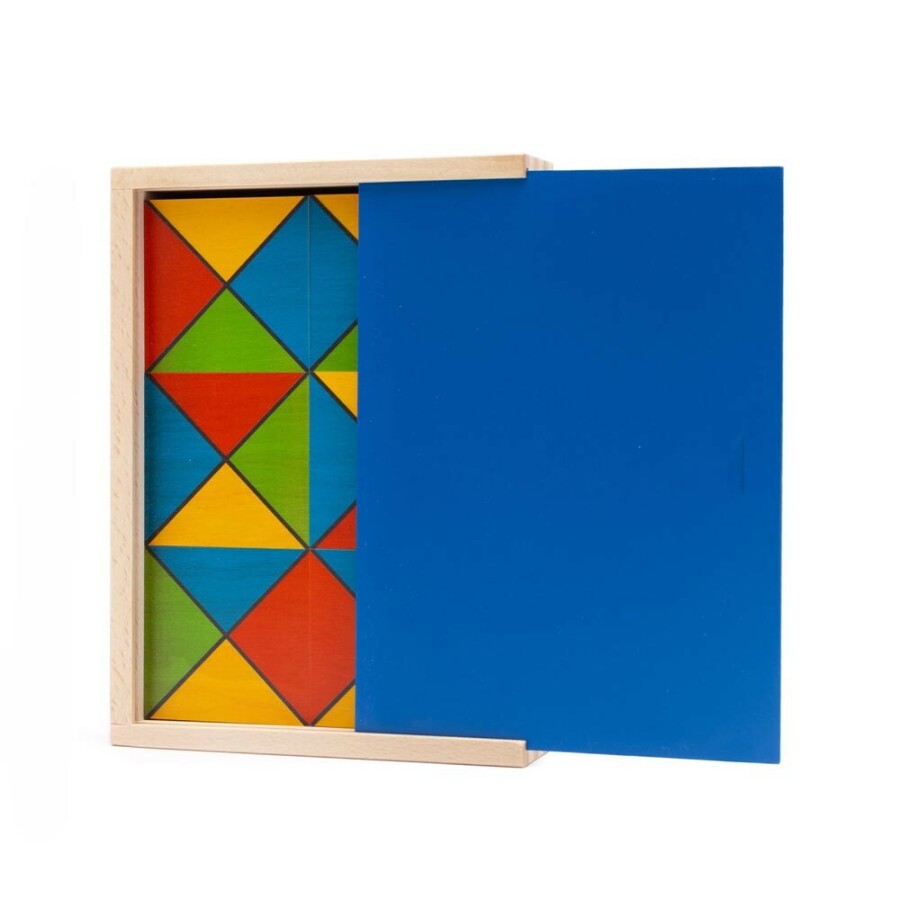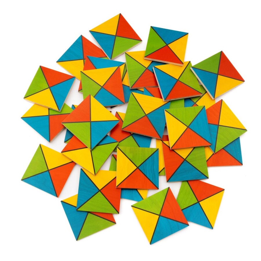 Dit houten legspel traint waarnemen, concentratie en ruimtelijk inzicht op een speelse manier. Kinderen leggen driehoeken tot perfecte vierkanten aan de hand van duidelijke voorbeeldkaarten. Speel solo of met de groep, met verschillende niveaus en zelfcontrole. Robuuste, kleurrijke tegels en houten box maken opruimen snel en netjes. Handig lesmateriaal geeft tips en varianten voor onderwijs en thuis.