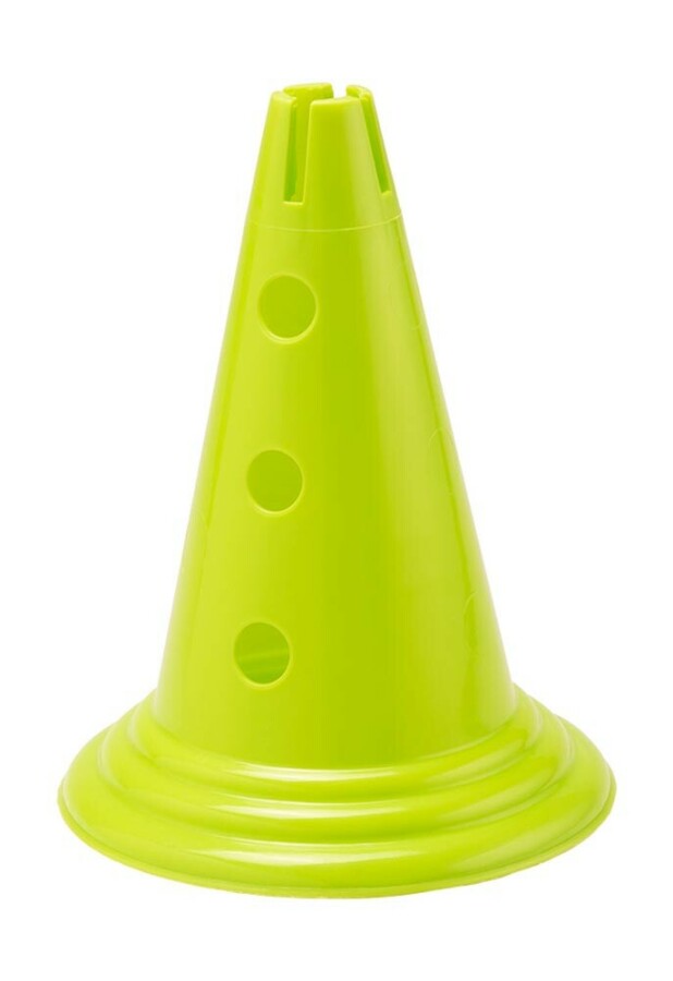 Deze pion met gaten is ideaal voor parcours, mikspel en bewegingslessen. De 12 openingen passen bij platte ringen en stokken voor eindeloze variaties. Gemaakt van 100% gerecycled kunststof, dus een duurzame keuze. Stevig en toch licht te verplaatsen door kinderen.