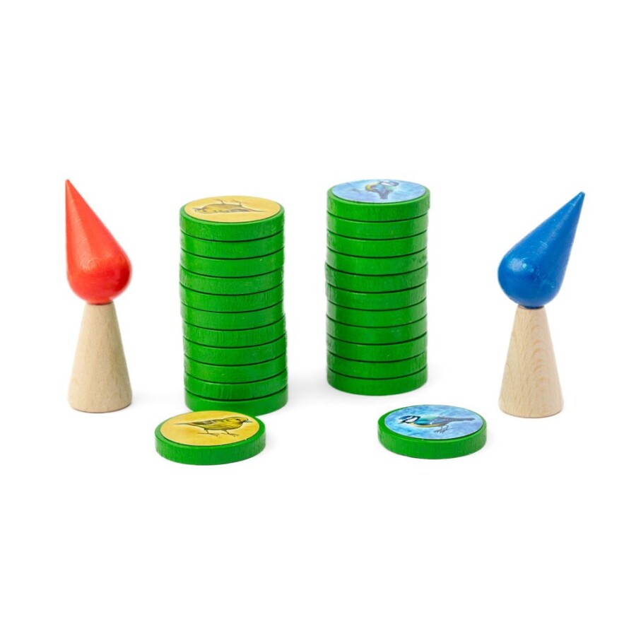 Slim denkspel met magneten waarin twee spelers elkaars vogels proberen te verjagen. Het speelsysteem doet denken aan Zeeslag, maar dan met bosvogels en bluf. Plaats, zoek en saboteer; wie als eerste de doelvogelset wegjaagt, wint. Degelijke materialen en een duurzame beukenhouten opbergdoos gaan jarenlang mee. Geschikt vanaf 4 jaar en sterk in strategie, concentratie en fijne motoriek.