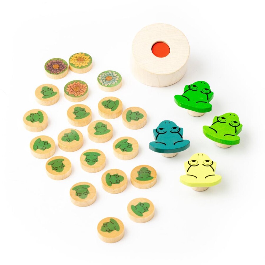 Eén bord, twee spellen: gericht landen op waterlelies of records breken met verspringen. Druk de magnetische kikker in de startblok en laat los met precies gevoel. Speel solo voor vaardigheid of tegen elkaar voor punten en strategie. Het stevige houten bord en de box zijn gemaakt voor dagelijks klasgebruik. Bevordert fijne motoriek, gericht mikken, ruimtelijk inzicht en spelplezier.