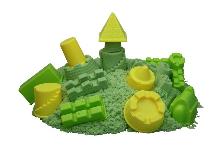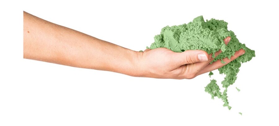 Groen kinetisch zand nodigt uit tot rustig spelen en experimenteren. Kneed het in vormen die stevig blijven staan en toch weer instorten. Het materiaal loopt daarna soepel door de vingers en voelt droog aan. Gemaakt van kwartszand met bijenwas voor een prettige, schone ervaring. Fijn voor groepjes of individueel spel.