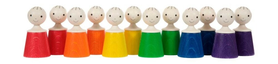 - Inhoud: 12 poppetjes (6 paren in 6 kleuren)