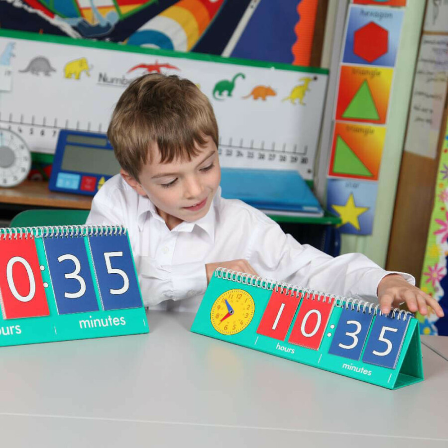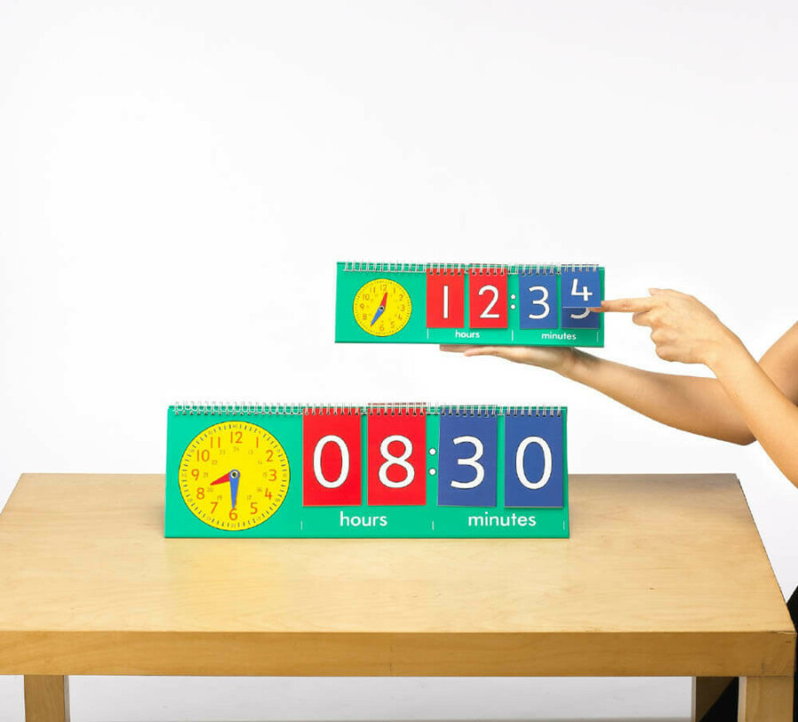 De Klassikale klok Flip-over is een ideaal hulpmiddel voor het aanleren van klokkijken. Deze klok Flip-over bevat de tijdsindicatie van zowel analoog als digitaal. Deze praktische klok combineert een analoge wijzerplaat met beweegbare, kleur gecodeerde wijzers en een digitale 24-uursweergave. Zo leren kinderen spelenderwijs klokkijken en het verband begrijpen tussen analoge en digitale tijd. Perfect voor klassikaal gebruik of thuisonderwijs.