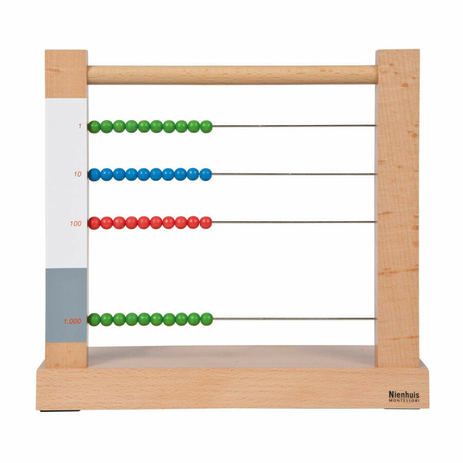 Met het kleine telraam kunnen getallen tot en met 9.999 gemaakt worden. Doel is het verwerven van inzicht in de standaardprocedure voor het optellen. De getallen kunnen worden opgeschreven op speciaal telraampapier. (apart te bestellen)