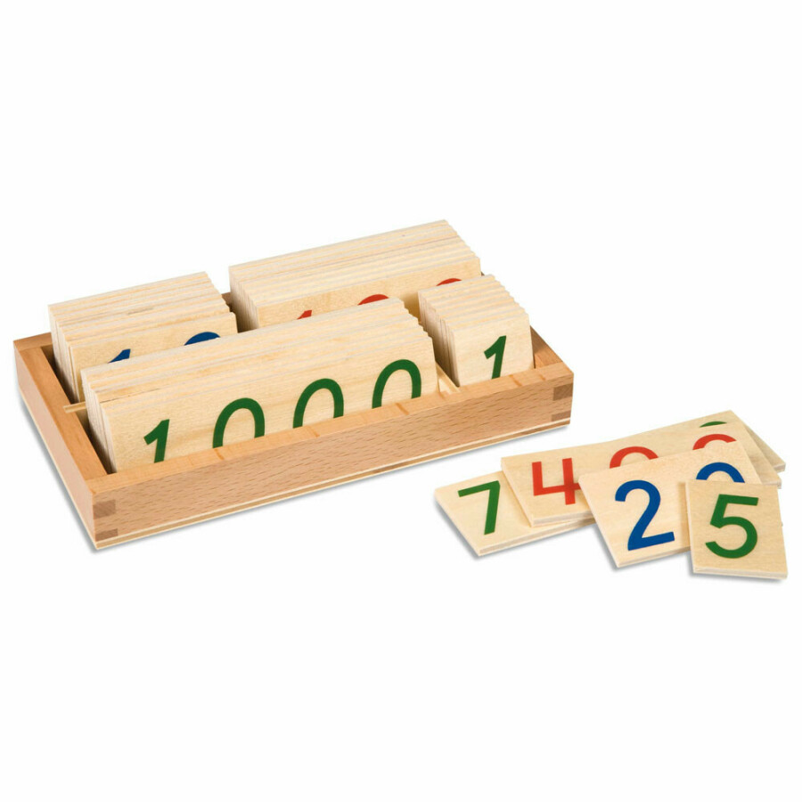 Getalkaarten waarmee getallen van 1 tot en met 1000 kunnen worden gemaakt. Het onderscheid tussen enen, tienen, honderden en duizenden wordt gemaakt door kleuren. Uitgevoerd in 2 versies groot en klein en in hout of kunststof.