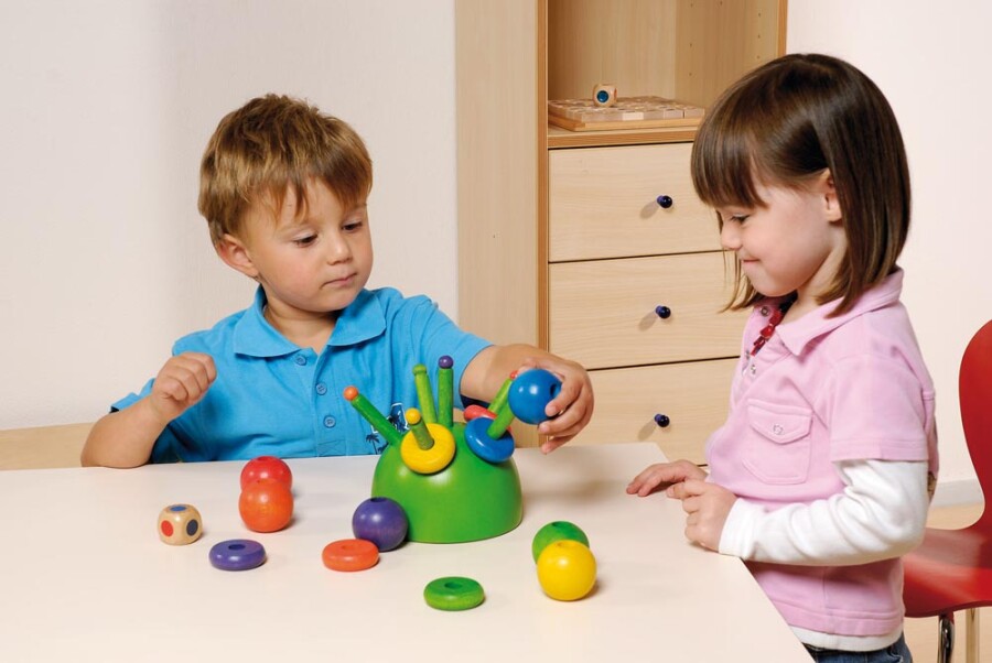 en - . Speel met kleuren, tellen en motoriek in een vrolijke cactus. Kinderen steken knoppen van twee kanten in de stam. Bloemen worden vrij of volgens de kleurdobbelsteen gecombineerd. Oefen sorteren, tellen en hand-oogcoördinatie. Stevig materiaal voor peuters en kleuters.