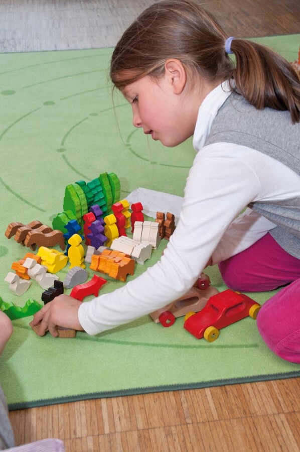 Complete set huisdieren, mensen en accessoires voor dagelijks rollenspel. De figuren zijn groot, stabiel en prettig vast te houden. Kinderen bedenken zorgsituaties en oefenen sociale taal. Sommige personages passen op de rug van dieren. Past goed in huishoek en themahoek.