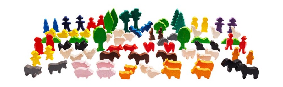 Specificaties van Kleurrijke houten speelgoedfiguren | Huisdieren (84-delig)