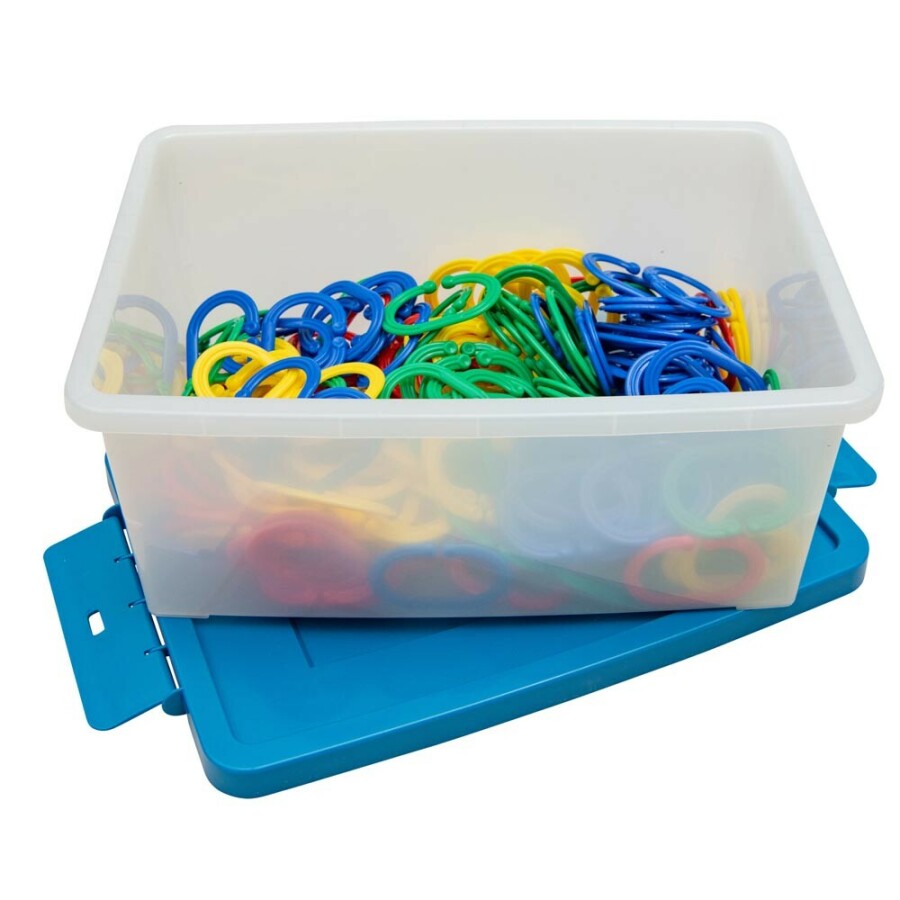Met deze kleurrijke kettingen kunnen kinderen spelenderwijs rekenen en sorteren oefenen. Ideaal voor gebruik in de klas of op het kinderdagverblijf, want het helpt bij het ontwikkelen van fijne motorische vaardigheden. Kinderen kunnen de kettingen makkelijk aan elkaar haken om lange slingers, poorten voor speelgoed of speelhoekjes te maken. Alles wordt geleverd in een handige opbergbox, zodat je na het spelen alles snel weer kunt opruimen.