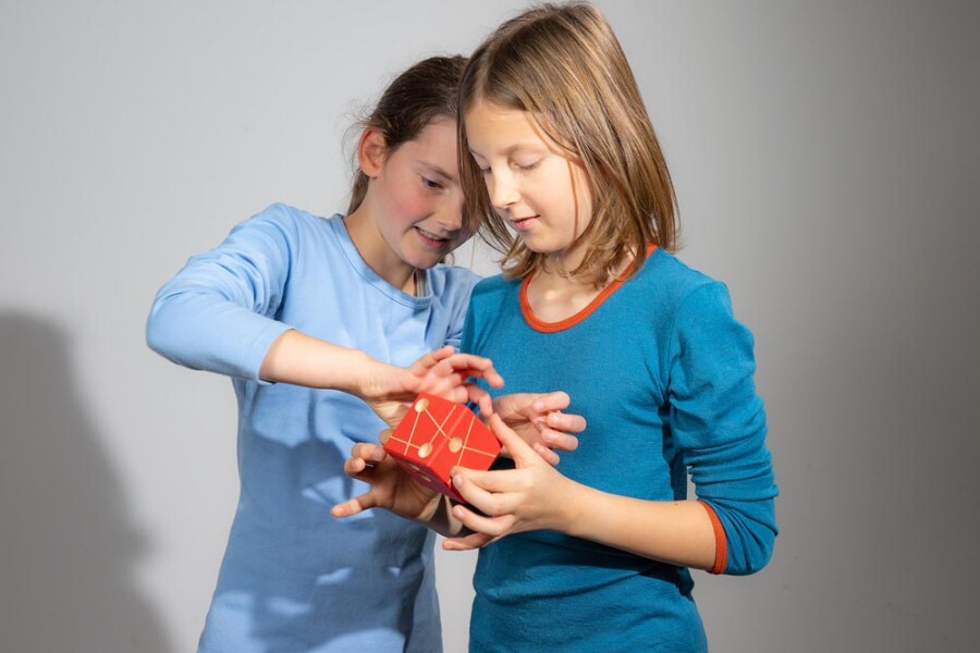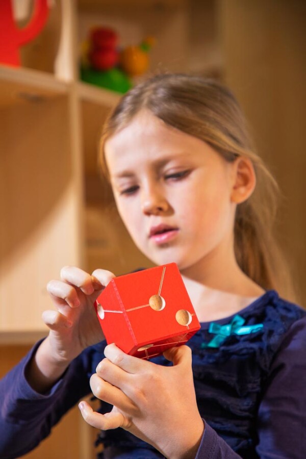 Handzaam denk- en behendigheidsspel met een kubus. Maximaal drie vingers mogen tegelijk de kubus raken. Je legt hem niet neer en laat hem niet vallen. Spannend voor snelle breinen en rustige handen.