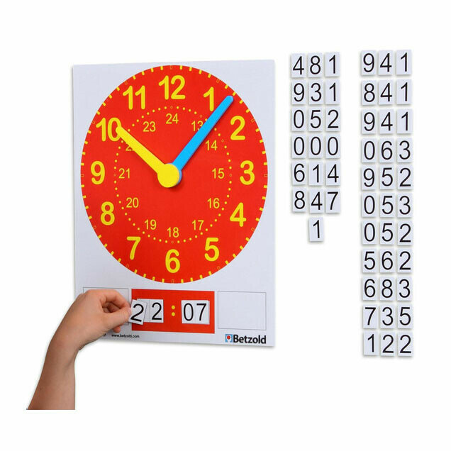 Deze klokken klassenset, bestaande uit 25 individuele 24 uurs klokjes en 1 magnetische demonstratie klok, is het ideale demonstratiemateriaal om klokkijken aan te leren. Met deze koffer wordt een duitstalige kopieermap meegeleverd met daarin voorbeelden.