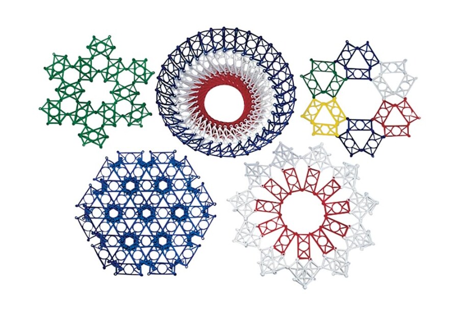 Met deze knoopelementen bouw je strakke patronen en stevige structuren. Het ene vormpje kan je knopen, vlechten, steken of lussen. Richt op fijne motoriek en ruimtelijk inzicht, thuis of in de groep. De uniforme kleur geeft rust en overzicht bij het ontwerpen. Loshalen en opnieuw verbinden gaat moeiteloos.