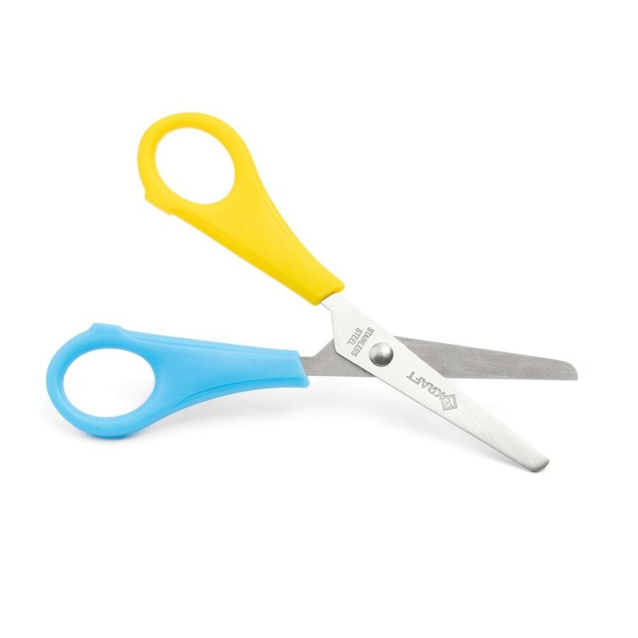 Speciaal voor linkshandigen die veilig willen knippen tijdens knutselen. De roestvrijstalen bladen snijden soepel door papier. De afgeronde punt geeft vertrouwen in de klas. De kunststof grepen liggen licht en prettig in de hand. Een centimeterschaal op het blad helpt meten en plannen.