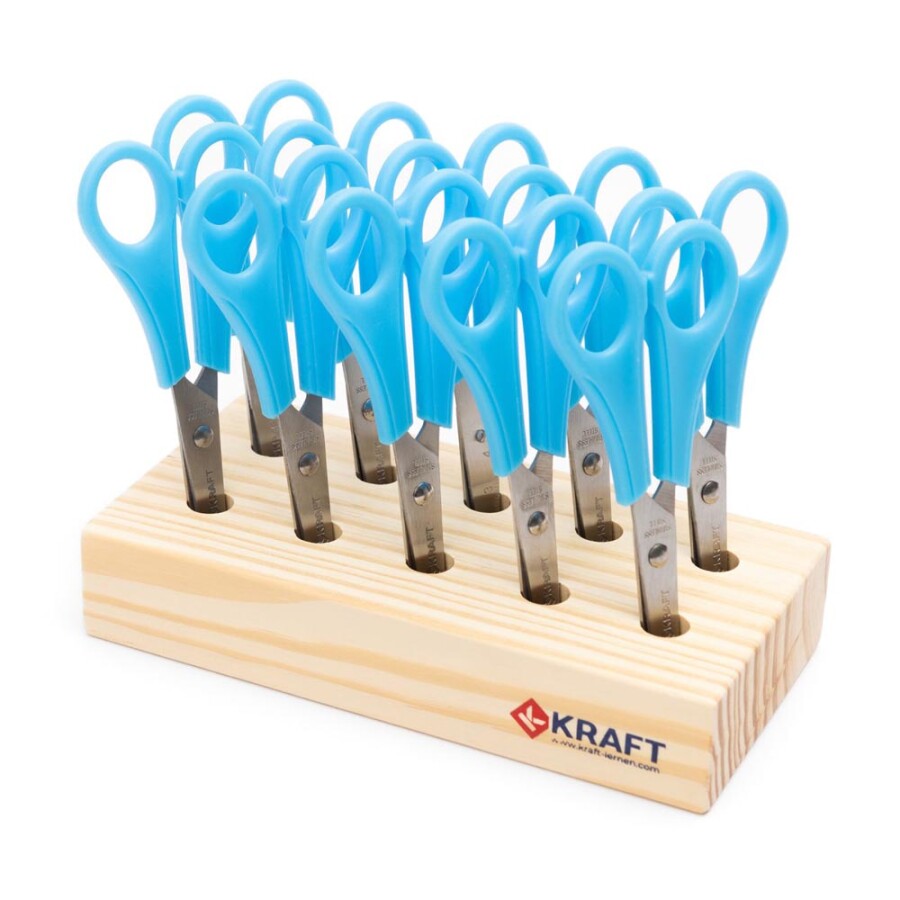 Zoek je een veilige schaar voor rechts? Deze versie heeft een afgeronde punt en knipt toch heel soepel. De roestvrijstalen bladen blijven netjes langs elkaar lopen door de stevige verbinding. De lichte, ergonomische greep ondersteunt een ontspannen kniphouding. Ideaal voor de klas en thuis, ook voor beginnende knippers. Op het blad staat een centimeterverdeling voor snel meten.