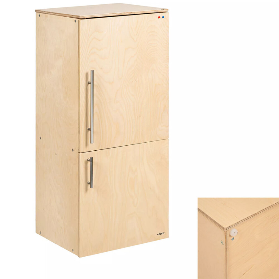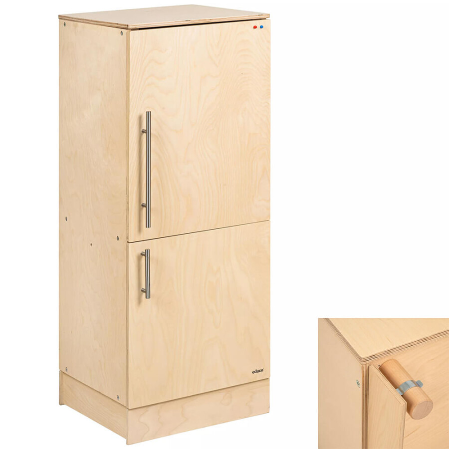 Creëer een herkenbare omgeving voor kinderen met de huishoudelementen van Educo. Door het gebruik van een realistische indeling van de koel-vriescombinatie en de ‘echte’ details zoals de metalen handvatten is het meubel heel herkenbaar voor kinderen.