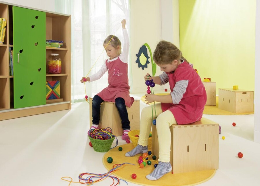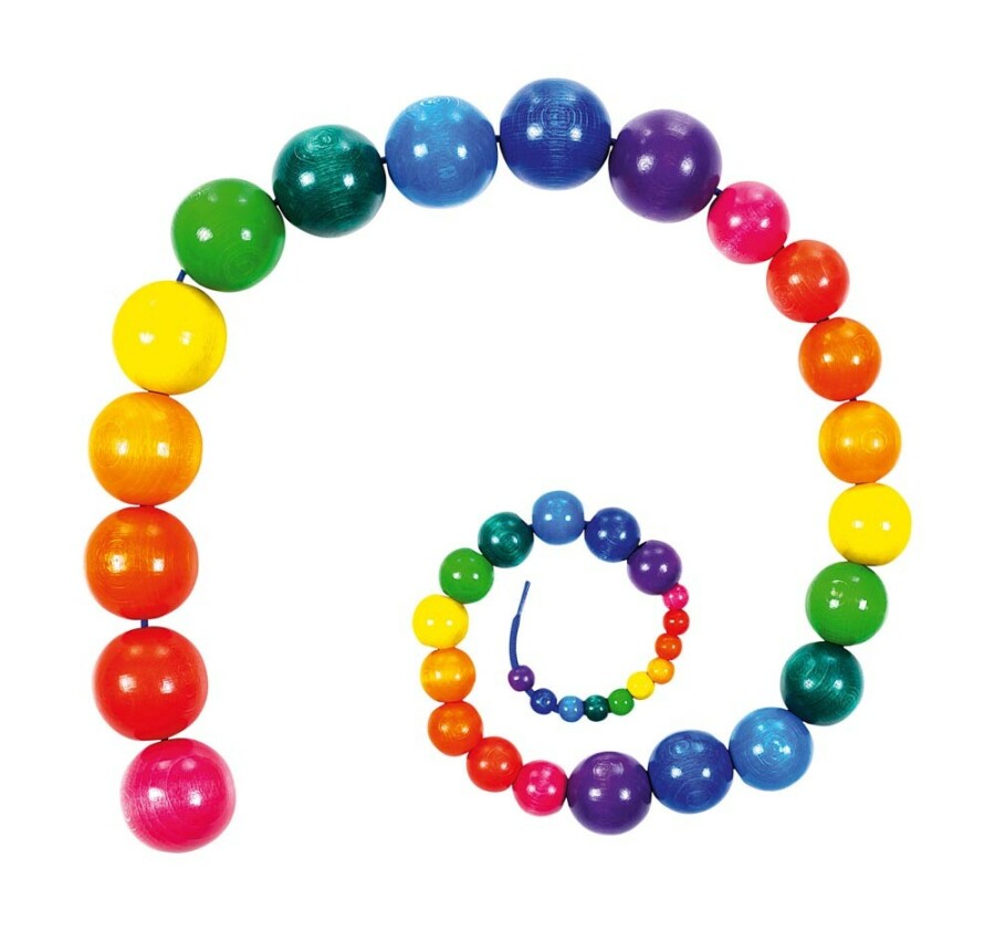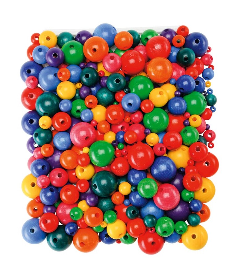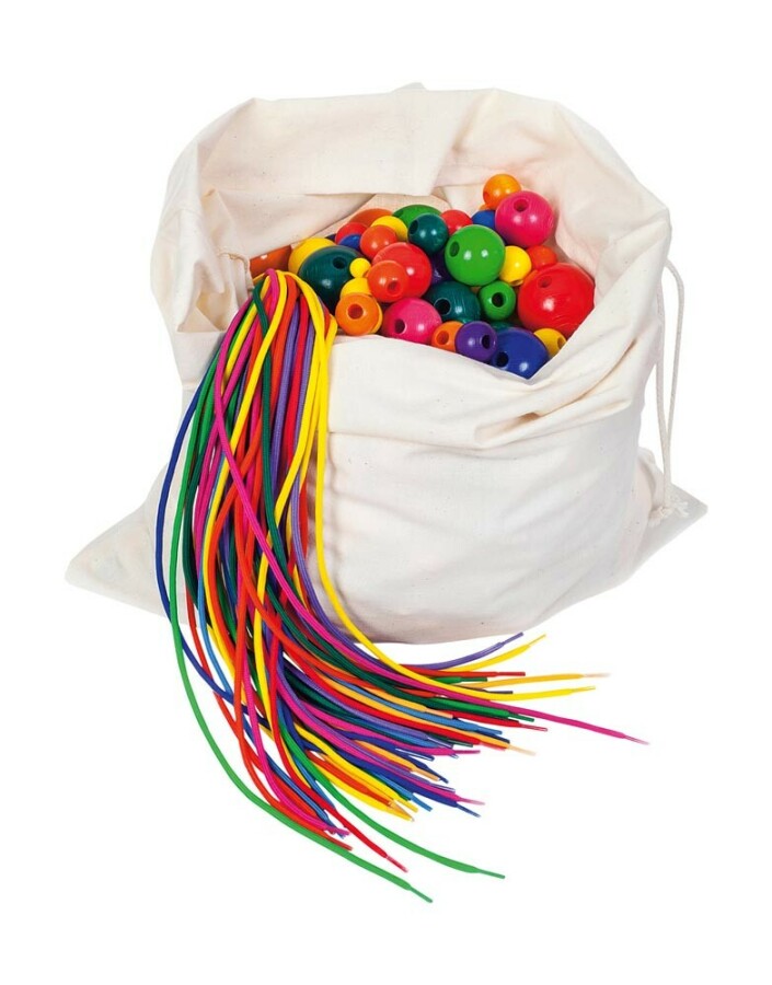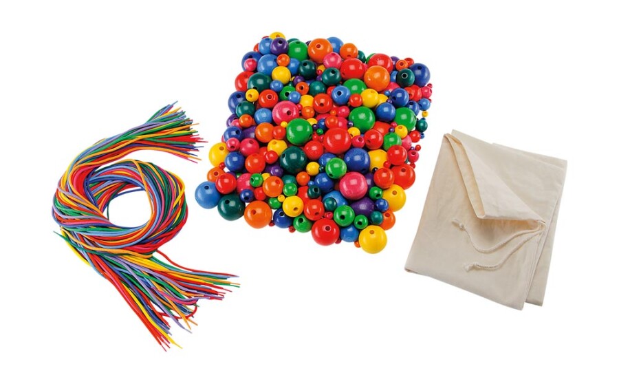 Extra grote rijgkralenset voor tellen, sorteren en patroontjes leggen. Kralen in vier diameters sluiten mooi aan bij de vrolijke veters. De lange koorden geven kinderen tijd en ruimte om te oefenen. Perfect voor kleine handen en groepsactiviteiten.