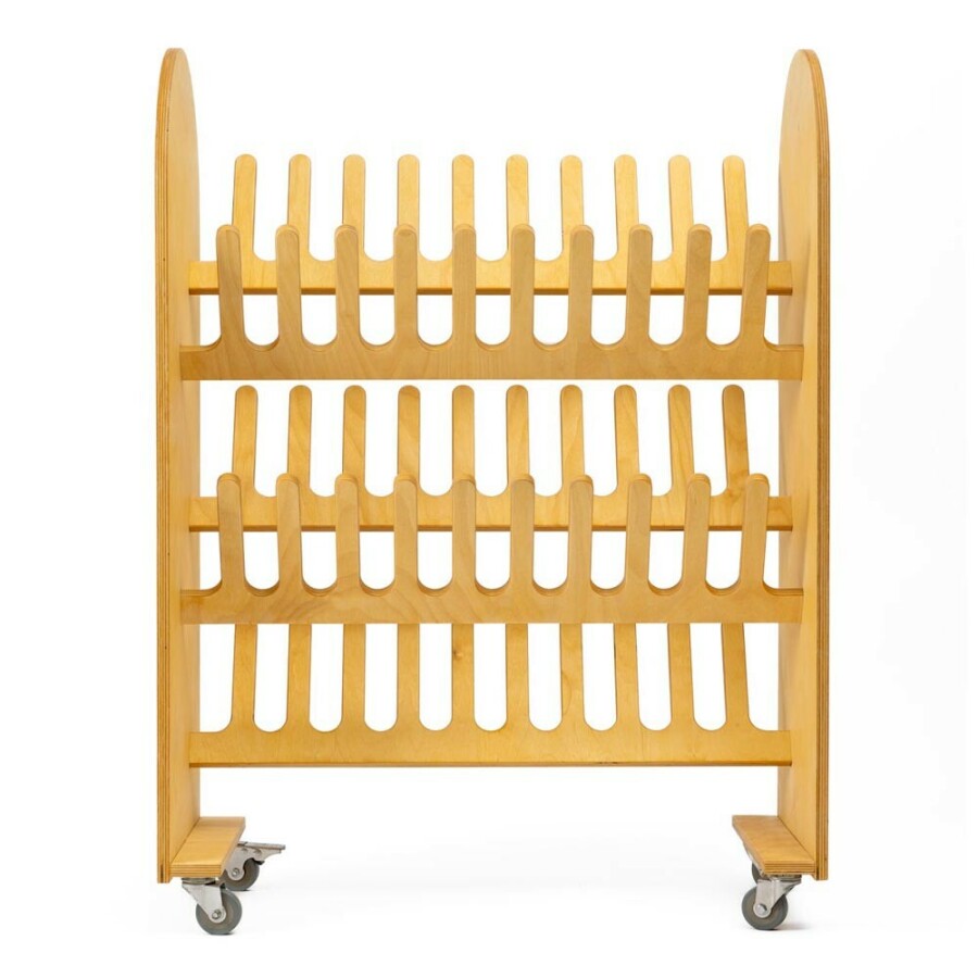 Deze slanke laarzenkar brengt rust in de entree en voorkomt rondslingerende schoenen. Plaats voor 25 paren, met soepel rollende wielen die je deels kunt vastzetten. Gemaakt van duurzaam berken-multiplex met waterlak en veilig afgeronde hoeken. Licht van gewicht en makkelijk te manoeuvreren.