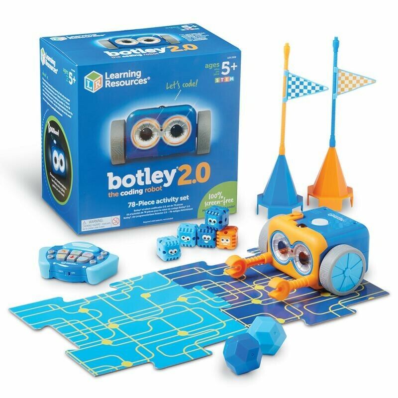 De set bevat een Botley 2.0-robot, een afstandsbediening, codeerkaarten, obstakelonderdelen en meer. Vereist 5 AAA-batterijen (niet inbegrepen).