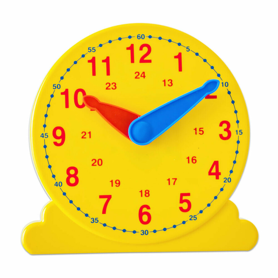 Dit leerlingenklokje ondersteunt leerlingen op betrouwbare wijze bij het leren van de tijd. De klok is gemaakt van kunststof en heeft een diameter van 13 cm. De grote cijfers op de wijzerplaat zijn gemakkelijk te lezen. Alle stappen van vijf zijn duidelijk gemarkeerd met stippen. Elke leerklok is uitgerust met een uurwerk van tandwielen zodat de wijzers synchroon bewegen. Dankzij de uitschuifbare standaard kunnen kinderen de klok staand voor zich neerzetten of neerleggen.