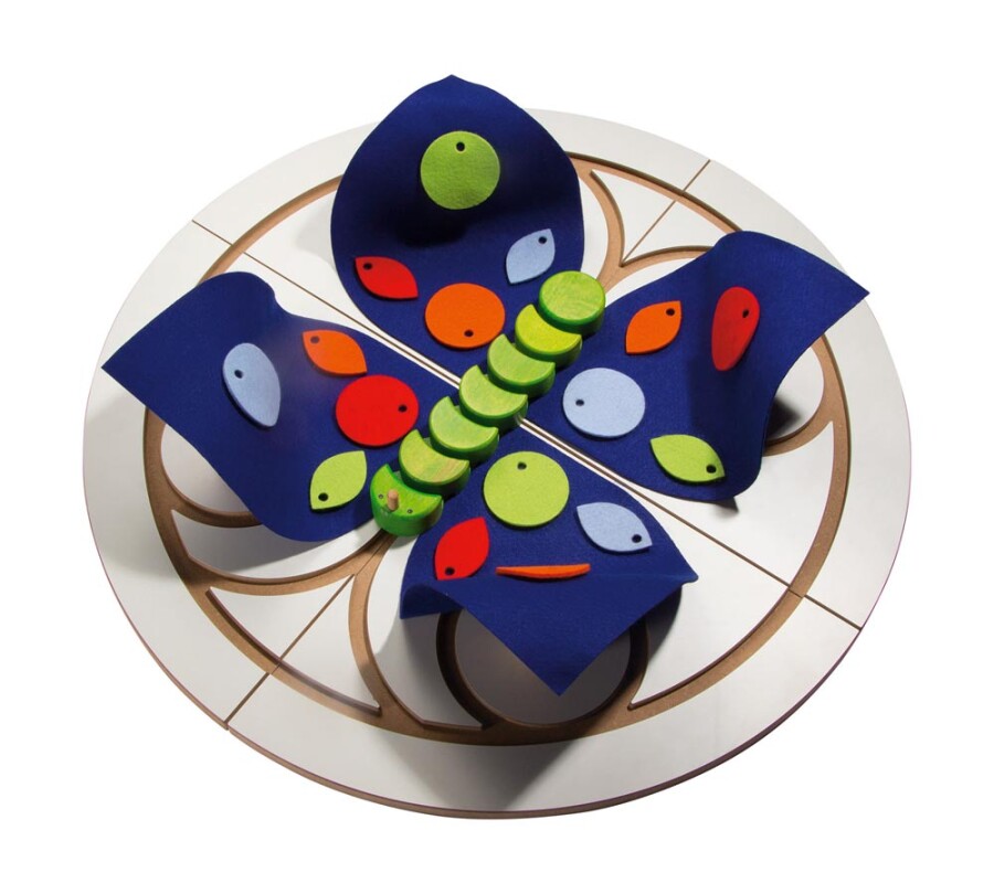 Kinderen helpen samen een rups uitgroeien tot een vlinder en oefenen kleuren, vormen en taal. De opdrachten lopen op in moeilijkheid, zodat ieder op eigen niveau meespeelt. Coöperatief spelen stimuleert overleg, beurtgedrag en woordenschat. Het stevige materiaal nodigt uit tot herhaald spel in klas en thuis.