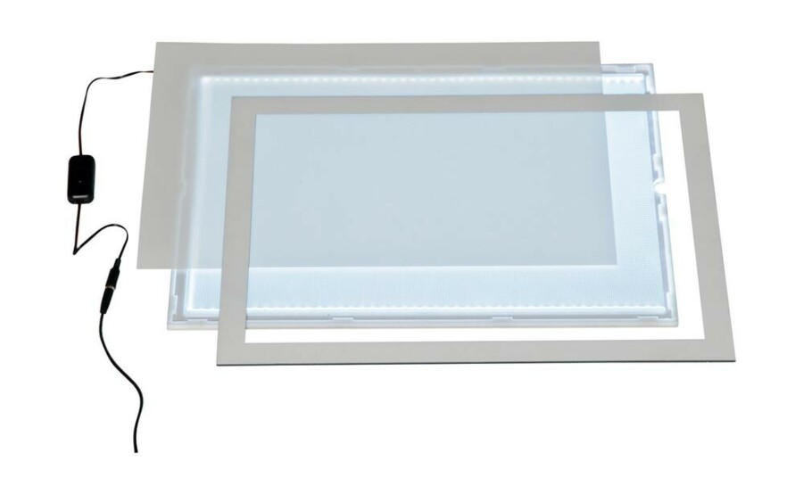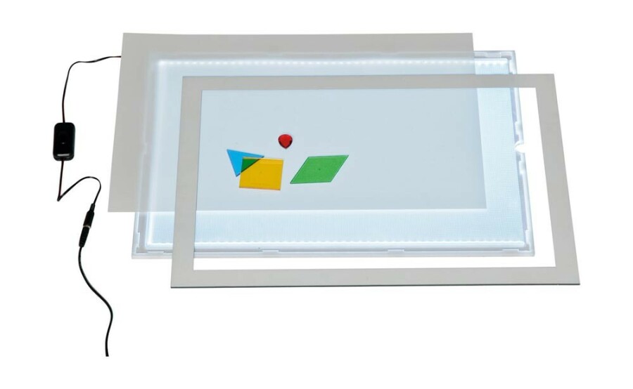 Handig voor klas of thuis: een klein verlicht vlak van ongeveer 42 x 30 cm. Ideaal om tekeningen van kinderen te belichten of om over te trekken tijdens knutselwerk. Je kunt meerdere platen aan elkaar leggen voor een groter verlicht oppervlak. De plaat is licht van gewicht en makkelijk te verplaatsen. Met duurzame LED-verlichting die lang meegaat en weinig warmte afgeeft. Ook geschikt om als verlicht beeld aan de muur te hangen.