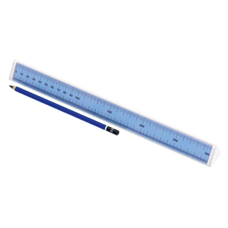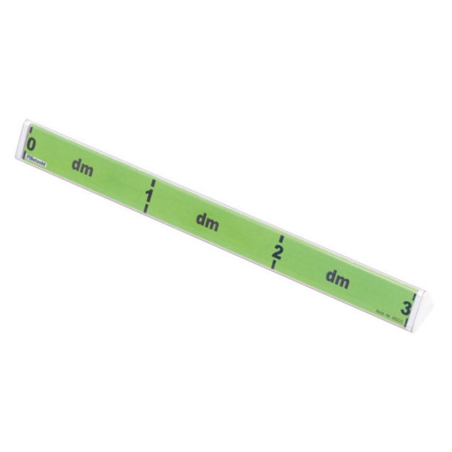 - Driezijdige liniaal met mm, cm en dm schalen.
