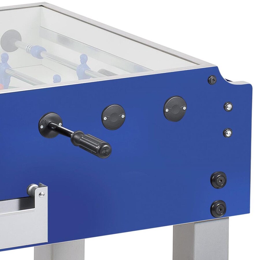 Buiten spelen wordt serieus leuk met deze weerbestendige tafelvoetbaltafel, ontworpen voor langdurig gebruik op schoolplein of BSO. Telescoopstangen verhogen de veiligheid en het geharde glas dempt geluid en houdt het speelveld schoon. Verstelbare poten compenseren oneffen ondergronden, zodat wedstrijden altijd eerlijk verlopen.