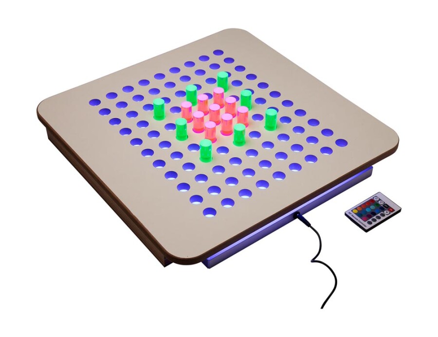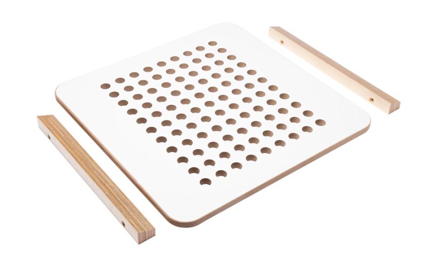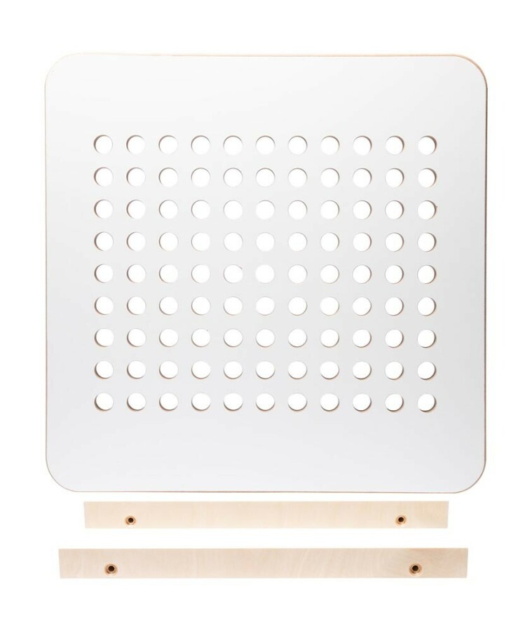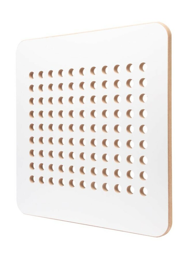Dit stevige wandbord nodigt uit om patronen, vormen en letters te prikken. In combinatie met de lichtplaat ontstaan kleurrijke effecten die kinderen blijven boeien. De gaatjes passen bij Luxy cilinders; houten pluggen maken negatiefbeelden zichtbaar. Ook plat op tafel te gebruiken voor kleine groepjes.