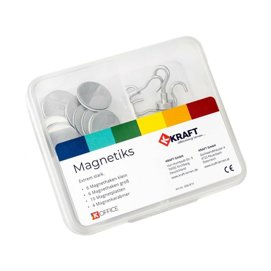 Wil je flexibel ophangen zonder te boren? Met dit complete magnetische set richt je wanden en kasten snel in. Plak de metalen schijfjes op gladde oppervlakken en klik haken of karabijnhaken erop. Perfect voor klassenindeling, routes, tassen en projecten, en later zo weer te verplaatsen.
