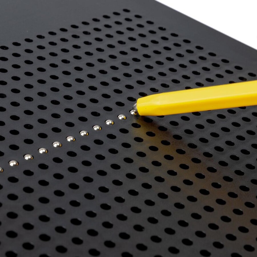 Kinderen tekenen vormen en letters door metalen bolletjes omhoog te toveren met de magnetische pen. Dat voelt leuk en werkt rustgevend. Ondertussen oefenen ze fijnmotoriek en oog-handcoördinatie, zelfstandig of onder begeleiding. De meegeleverde voorbeelden geven duidelijke uitdagingen voor elke leerling.